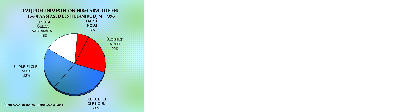 62% vastanuist nõustus väitega, et neil pole personaalselt mingit hirmu arvuti kasutamise ees. 16% vaidles sellele vastu. Arvuti kasutajate hulgas oli see protsent 90%. Huvitav on märkida, et ka arvutit mitte kasutajatest ja seda mitte plaanijatest 46% leiab, et neil pole mingit hirmu arvuti kasutamisel. Enim tunnistavad oma hirmu need, kes pole seni kasutanud, kuid plaanivad seda teha järgmise 12 kuu jooksul (23% ei olnud nõus väitega).