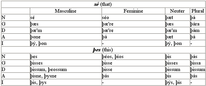 Examples of a-stems: earm (an arm), eorl, helm (a helmet), hring (a ring), mъю (a mouth); neuter ones - dor (a gate), hof (a courtyard), geoc (a yoke), word, dйor (an animal), bearn (a child), gйar (a year).